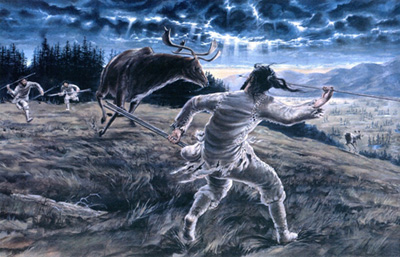 彼らが手に持っているヤリは狩りの途中でこわれてしまいました。